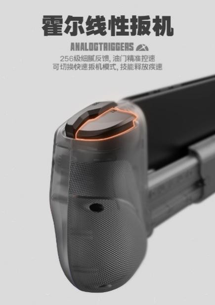 霍尔线性扳机,256级细腻反馈,精准模拟油门控速,还可切换快速扳机模式。
