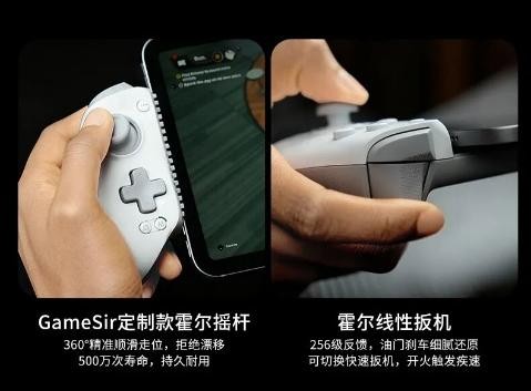双霍尔配置加持:500万次寿命定制款霍尔摇杆,走位丝滑,指哪打哪;霍尔线性扳机细腻反馈油门深浅,可切换快速扳机,适应不同游戏需求。