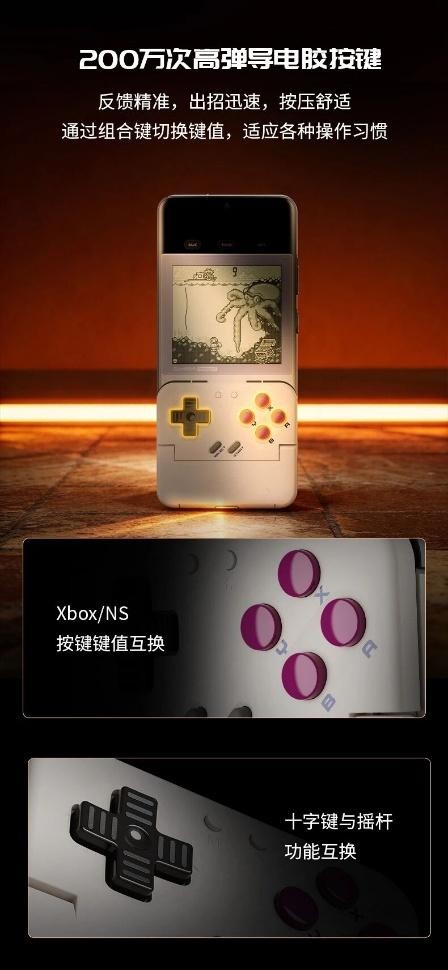 ABXY键与十字键均为高弹导电硅胶按键,拥有200万次寿命,反馈精准、按压舒适,还可通过组合键,一键切换不同平台的键位布局。